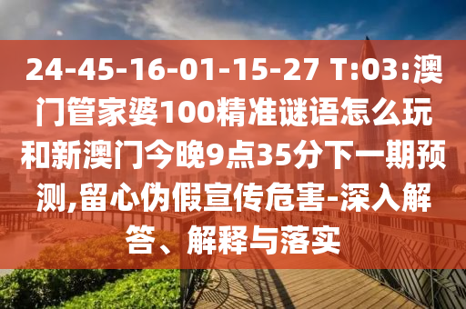 24-45-16-01-15-27 T:03:澳門管家婆100精準謎語怎么玩和新澳門今晚9點35分下一期預測,留心偽假宣傳危害-深入解答、解釋與落實