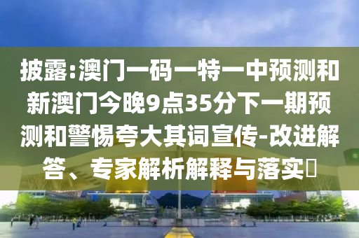 披露:澳門一碼一特一中預測和新澳門今晚9點35分下一期預測和警惕夸大其詞宣傳-改進解答、專家解析解釋與落實?