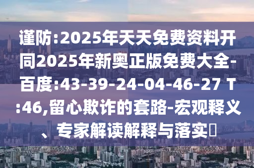 謹防:2025年天天免費資料開同2025年新奧正版免費大全-百度:43-39-24-04-46-27 T:46,留心欺詐的套路-宏觀釋義、專家解讀解釋與落實?