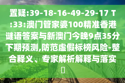 置疑:39-18-16-49-29-17 T:33:澳門管家婆100精準(zhǔn)香港謎語答案與新澳門今晚9點35分下期預(yù)測,防范虛假標(biāo)榜風(fēng)險-整合釋義、專家解析解釋與落實?