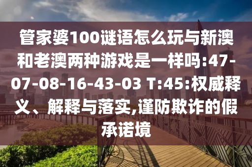 管家婆100謎語怎么玩與新澳和老澳兩種游戲是一樣嗎:47-07-08-16-43-03 T:45的權(quán)威釋義、解釋與落實(shí)