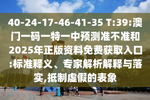 40-24-17-46-41-35 T:39:澳門一碼一特一中預測準不準和2025年正版資料免費獲取入口:標準釋義、專家解析解釋與落實,抵制虛假的表象