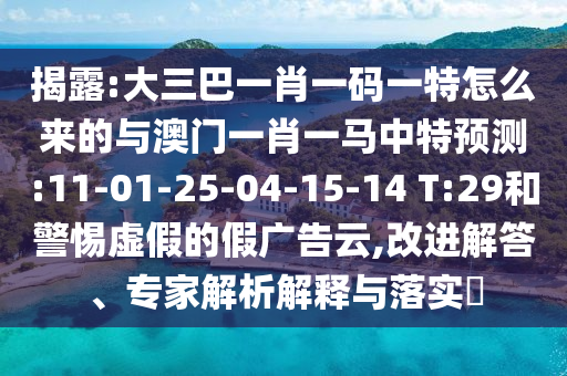 揭露:大三巴一肖一碼一特怎么來的與澳門一肖一馬中特預(yù)測:11-01-25-04-15-14 T:29和警惕虛假的假廣告云,改進(jìn)解答、專家解析解釋與落實?