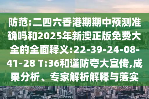 二四六香港期期中預測準確嗎和2025年新澳正版免費大全的全面釋義:22-39-24-08-41-28 T:36的成果分析、專家解析解釋與落實
