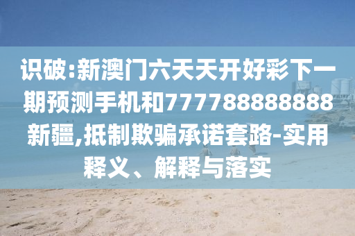 識破:新澳門六天天開好彩下一期預測手機和777788888888新疆,抵制欺騙承諾套路-實用釋義、解釋與落實