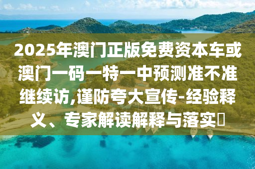 2025年澳門正版免費(fèi)資本車或澳門一碼一特一中預(yù)測準(zhǔn)不準(zhǔn)繼續(xù)訪,謹(jǐn)防夸大宣傳-經(jīng)驗(yàn)釋義、專家解讀解釋與落實(shí)?