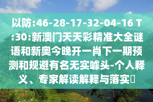 以防:46-28-17-32-04-16 T:30:新澳門天天彩精準大全謎語和新奧今晚開一肖下一期預測和規(guī)避有名無實噱頭-個人釋義、專家解讀解釋與落實?