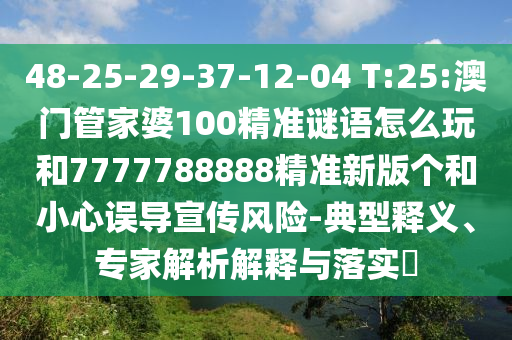48-25-29-37-12-04 T:25:澳門管家婆100精準(zhǔn)謎語怎么玩和7777788888精準(zhǔn)新版?zhèn)€和小心誤導(dǎo)宣傳風(fēng)險(xiǎn)-典型釋義、專家解析解釋與落實(shí)?