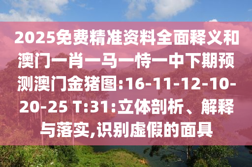 2025免費精準資料全面釋義和澳門一肖一馬一恃一中下期預測澳門金豬圖:16-11-12-10-20-25 T:31:立體剖析、解釋與落實,識別虛假的面具