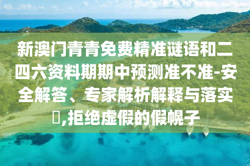 關(guān)于新澳門青青免費(fèi)精準(zhǔn)謎語和二四六資料期期中預(yù)測準(zhǔn)不準(zhǔn),拒絕虛假的假幌子的問題,我們將從全面釋義、專家解讀與落實(shí)、警惕虛假宣傳等方面進(jìn)行解析和描述。