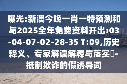 關(guān)于曝光“新澳今晚一肖一特預(yù)測”和“與2025全年免費(fèi)資料開出:03-04-07-02-28-35 T:09”的內(nèi)容,以及歷史釋義、專家解讀和抵制欺詐的假誘導(dǎo)詞等相關(guān)問題,本文將為您全面釋義、解釋與落實。